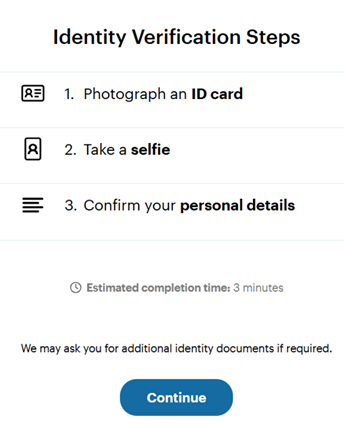 For further information please see our FAQs on Identity and Verification.