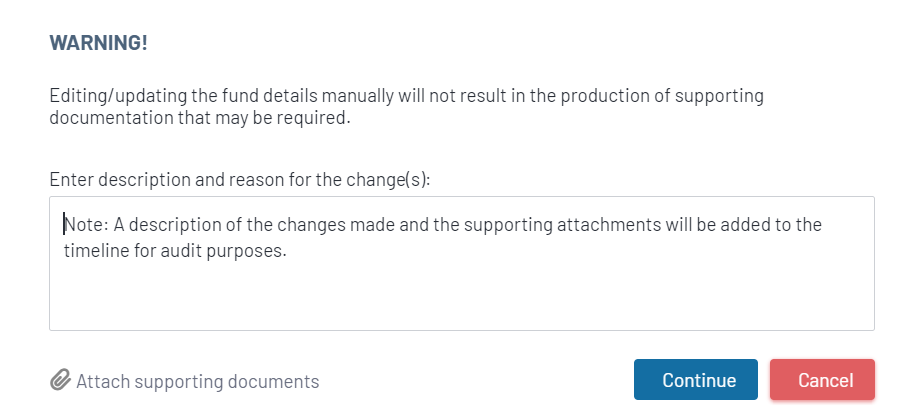 Note: It is strongly recommended to take care in making any edits as a Fund is a legal entity and certain changes can trigger adverse tax and stamp duty consequences.